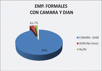 De las 1620 que tienen Cámara de Comercio el 95% (1541) tiene además industria y comercio y de las mismas 1620 el 94% (1524) tiene además DIAN.