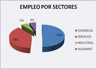 Para el año 2010 la generación de empleo por sectores económicos en la ciudad de Pamplona, fue de 4284 personas en total; siendo el sector comercial el que mayor participación tuvo con un 50% (2165 personas), seguido del sector servicios con un 38% (1632) y un 6% (240 y 247) respectivamente para el sector industrial y solidario.