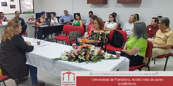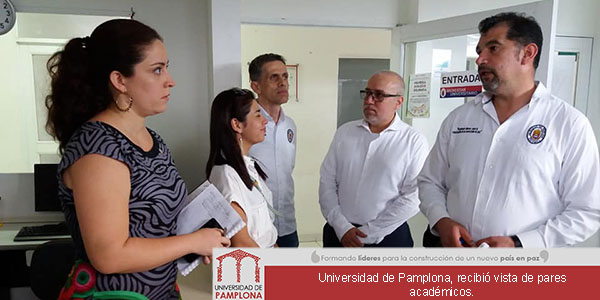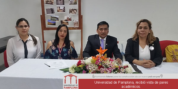 La Universidad de Pamplona, recibió la visita de los pares académicos designados por el Ministerio de Educación Nacional, Mónica Baquero Gaitán, para la ampliación Pamplona – Cúcuta del Programa de Comunicación Social, Héctor Flórez Fernández y Diana Lancheros Cuesta, para verificación de las condiciones de calidad del Doctorado en Automática y Vivian Liceth Suárez Moreno, Juan Carlos González Tobón, Nadya Cielo Esperanza Neme Neiva con el fin de verificar las condiciones para la ampliación del Programa de Diseño Industrial.