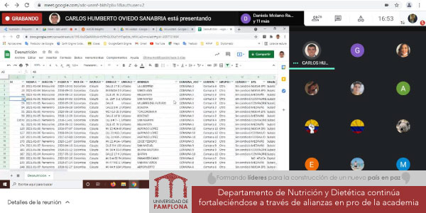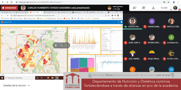 Como resultado de las estrategias entre los grupos de investigación Salud Humana del programa de nuestra institución y Salud y Sociedad del programa de Ingeniería Ambiental de la Universidad Francisco de Paula Santander, se llevó acabo el conversatorio sobre: Sistemas de información geográfica como herramienta analítica de datos en el contexto de la representación cartográfica de la desnutrición en menores de cinco años del municipio de San José de Cúcuta, en el contexto de las prácticas formativas Campos de Acción Profesional, desarrolladas a través de la dimensión de seguridad alimentaria y nutricional de la Secretaría de Salud Municipal.