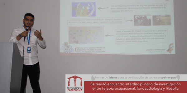 En el auditorio Jorge Eliécer Gaitán de Pamplona, estudiantes de los programas ya mencionados se reunieron con el fin de compartir e intercambiar conocimientos, durante el Primer Encuentro de Investigación Interdiscipinario de Salud, Bienestar y Ocupación, organizado por el programa de Terapia Ocupacional de la Universidad de Pamplona, el cual también contó con la presencia de la Universidad de Santander, sedes de Bucaramanga y Cúcuta.