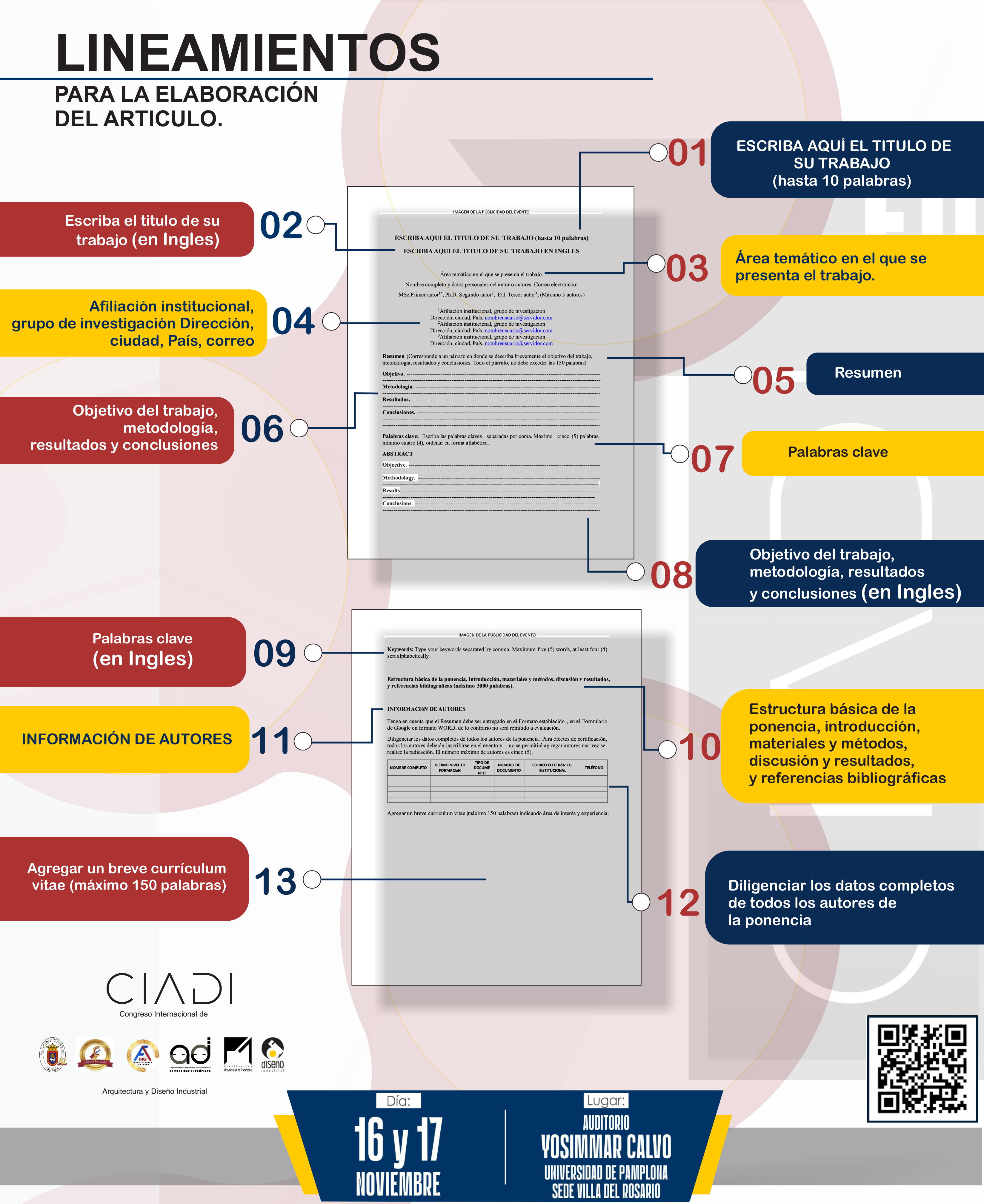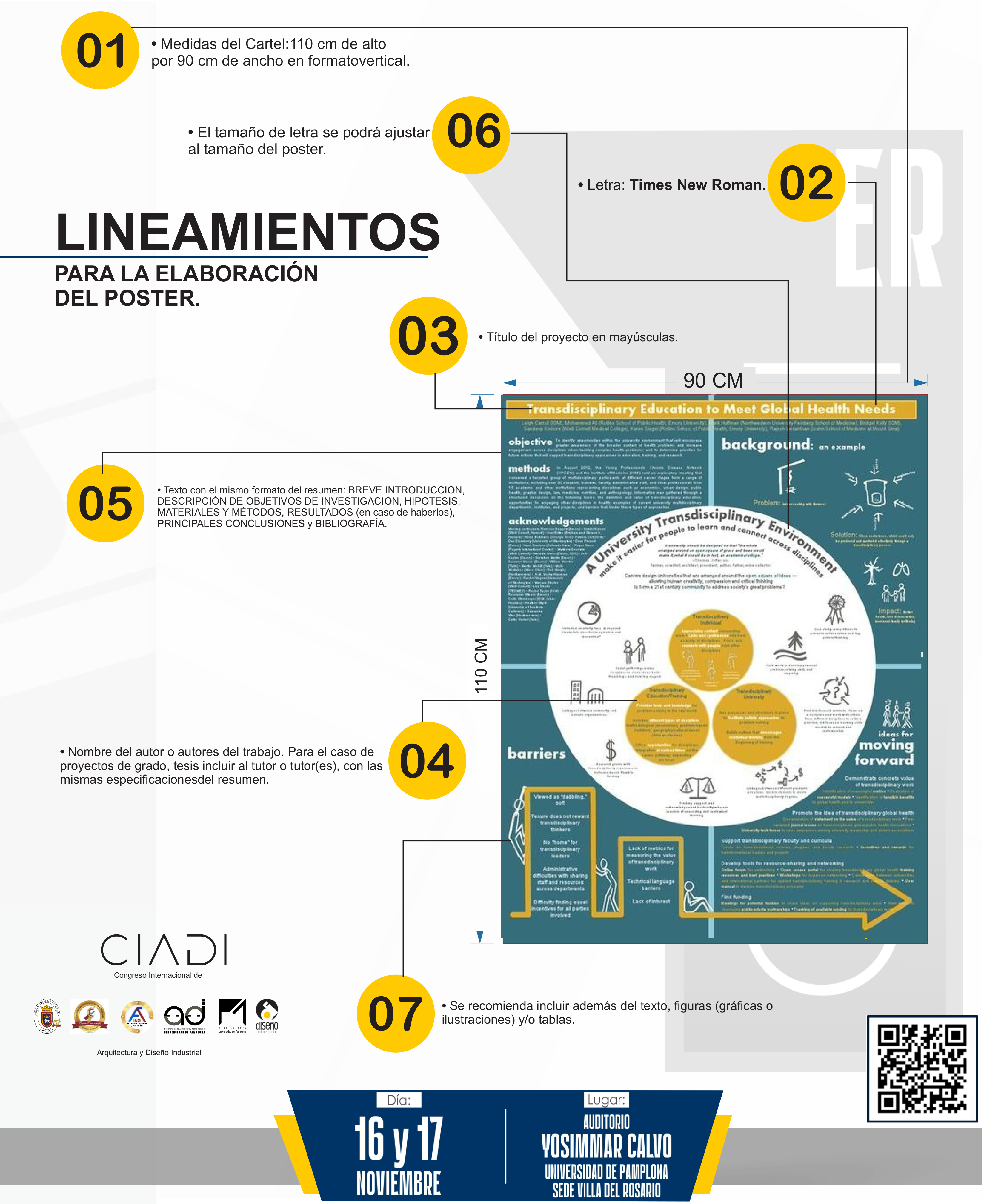 La Universidad de Pamplona a través del departamento de Arquitectura y Diseño Industrial convocan a estudiantes, docentes y profesionales de las áreas de conocimiento de Arquitectura y Diseño Industrial, así como a investigadores y consultores que trabajan en los campos de diseño, urbanismo y planificación urbana y regional; y sus ejes centrales corresponden a la temática de: Tendencias en diseño, tecnología y sostenibilidad como aspectos estratégicos del desarrollo en el ámbito planetario, a participar en el: II CONGRESO INTERNACIONAL DE ARQUITECTURA Y DISEÑO INDUSTRIAL - CIADI: "Tendencias en diseño, Tecnología y Sostenibilidad".