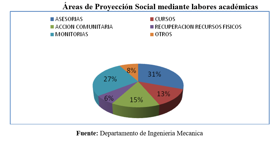 - Proyección Social mediante la Promoción del Departamento de Ingeniería Mecánica y la Motivación de la Sociedad Escolar de la Región.
