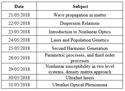 El Grupo Óptica Moderna a través del fondo de investigaciones de la Universidad de Pamplona, invitó al Profesor Hernando García, PhD física y profesor Asociado perteneciente al Departamento de Física de la Universidad de Illinois (Unversity of Illinois EUA) con el fin de impartir un curso de óptica no lineal del 21 a 31 de mayo de 2018.