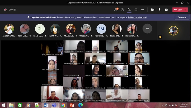 Programa de Administración de Empresas modalidad A Distancia de la Universidad de Pamplona , generó entre el día 27 de septiembre y el 01 de octubre la SEMANA DE CAPACITACIONES DE LAS COMPETENCIAS GENÉRICAS que evalúa el ICFES SABER PRO para el año 2021. Durante las capacitaciones se tuvo la participación de 36 estudiantes en promedio.