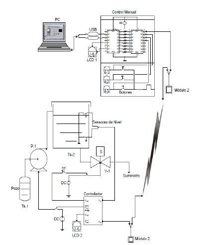 Este trabajo está enfocado en un tópico que está siendo cada vez más atractivo a nivel industrial como el control y análisis de procesos a distancia a través de tecnología inalámbrica. El desarrollo utilizado en este trabajo se basa en el protocolo ZigBee, y aparece como una fuerte herramienta para desarrollo de aplicaciones industriales. Por lo que se desarrolla la aplicación para la automatización de un sistema de suministro de agua potable, donde se llevan a cabo acciones como la adquirir datos, realizar mediciones de nivel y volúmenes de agua, suministrar y llenar el tanque de forma manual y automática, haciendo uso de la herramienta computacional LabView para la instrumentación virtual. Con todo esto lo que se pretende es suprimir las conexiones físicas mediante cables, dando una enorme flexibilidad al sistema.