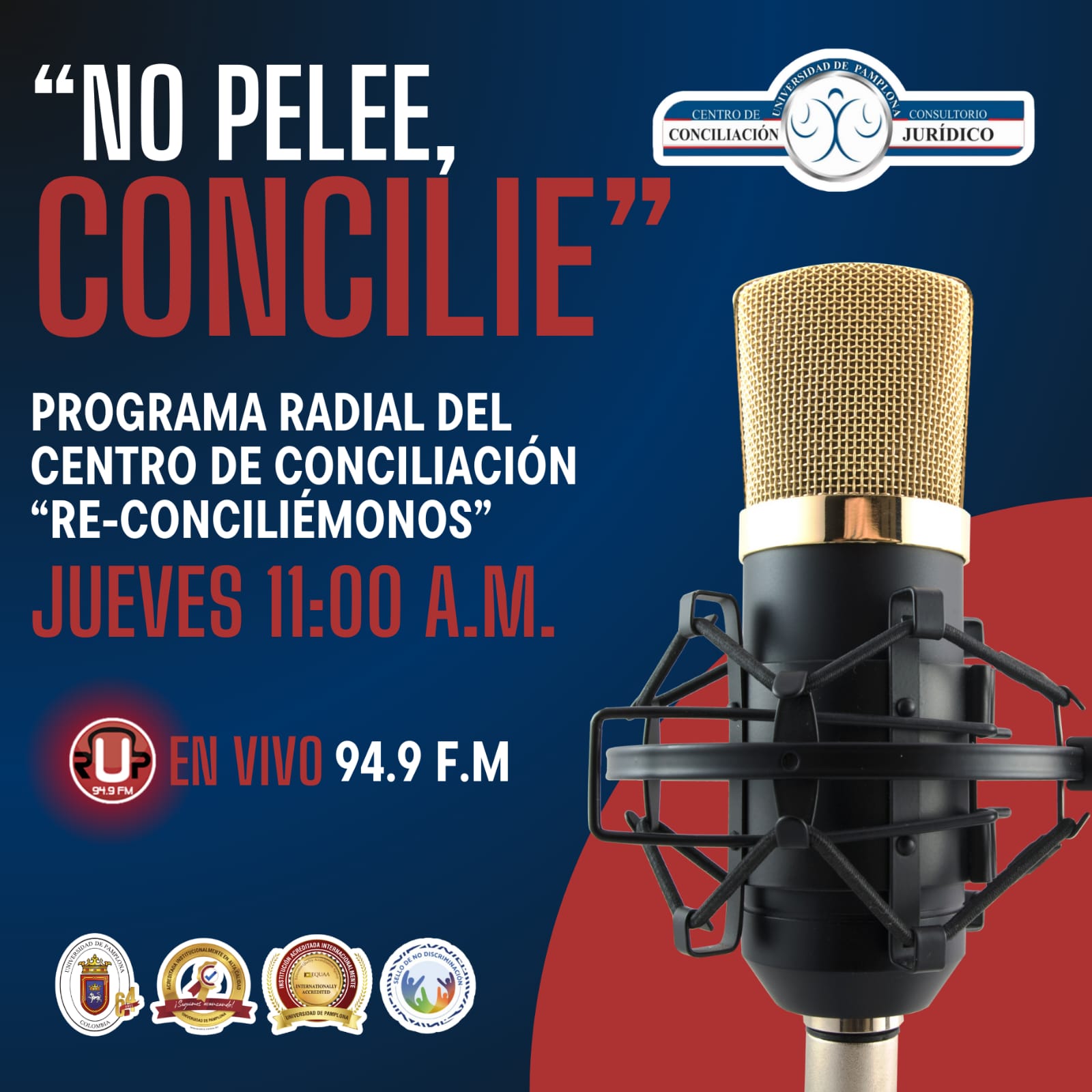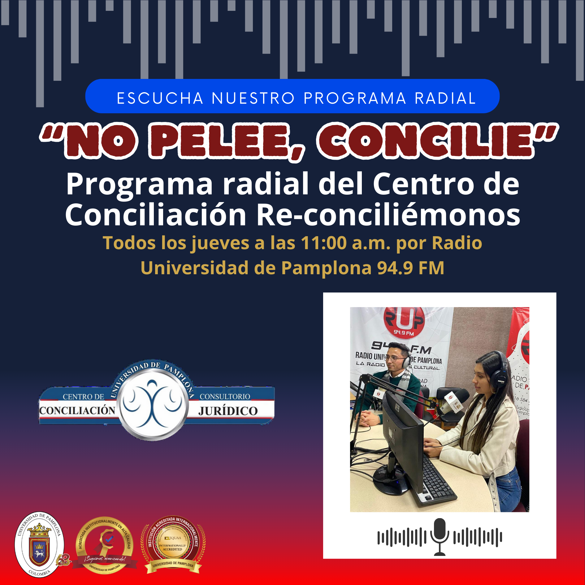 El programa radial del Centro de Conciliación "Re-Conciliémonos" está a cargo de los estudiantes conciliadores, quienes desarrollan temáticas relacionadas con el proceso de conciliación y los servicios que ofrece a la comunidad pamplonesa y aledaña. Es transmitido por medio de la Emisora Radio Universidad de Pamplona, a través de 94.9 FM, y es orientado por la coordinadora del Centro de Conciliación "Re-Conciliémonos", Joyce Andrea Parada Gómez.