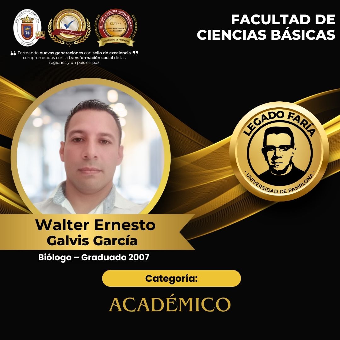 Biólogo y Magíster en Práctica Pedagógicar, con una sólida trayectoria en investigación científica, producción académica y formación de talento humano. Desde 2009 se desempeña como Docente Investigador del Departamento de Biología de la UFPS, contribuyendo al fortalecimiento de los procesos investigativos en pregrado y posgrado.