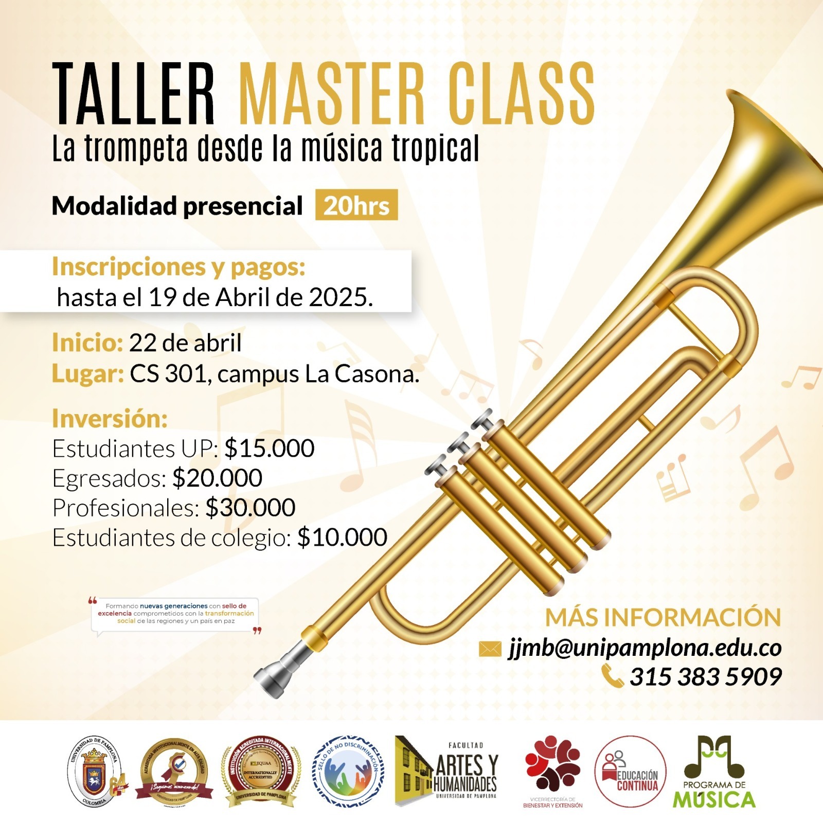 Estudiantes $ 15.000Egresados$ 20.000Profesionales$30,000Organizadores$15,000Estudiantes de colegio$10,000