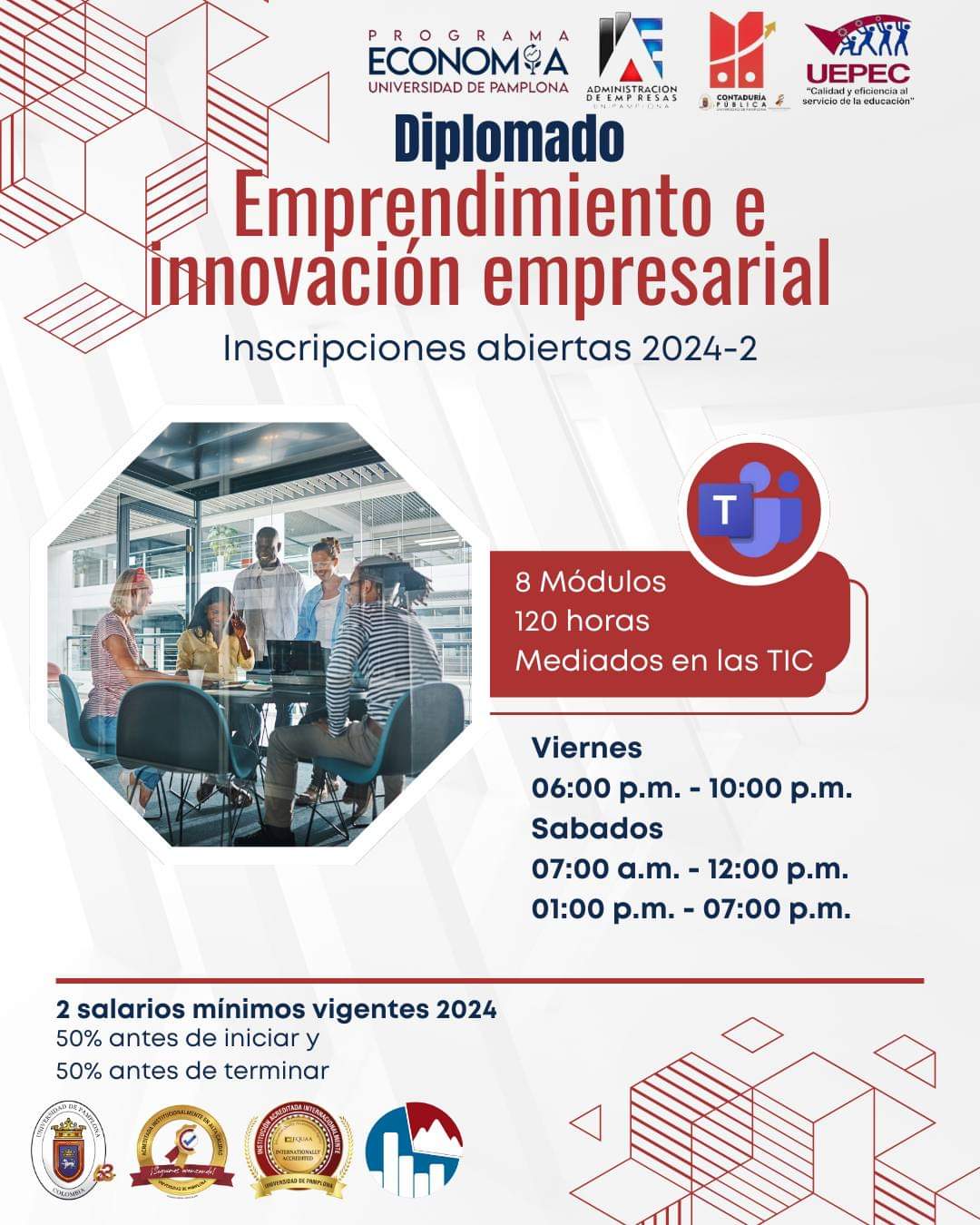 Este diplomado se enfoca en brindar conocimiento en materia de emprendimiento, creación y formulación de planes de negocio como proyecto de vida, con una visión a largo plazo de los mismos, desde el enfoque de innovación y las nuevas herramientas del mercado y tecnológicas; permitiendo al estudiante adquirir las competencias básicas en materia de desarrollo de ideas de negocio, con el énfasis de estructurar emprendimiento de alto impacto que contribuyen al desarrollo económico de la región.