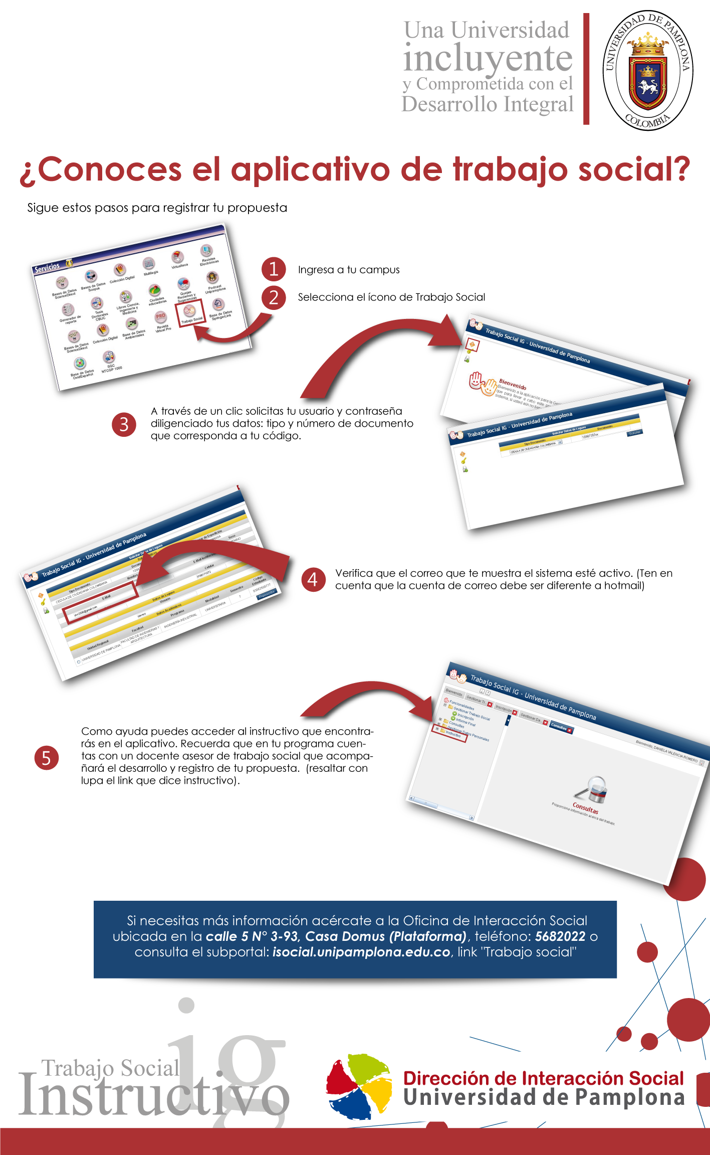 Cónozca la información completa sobre el proceso de trabajo social a través de un clic en cada área de interés. Observe los video tutoriales de acuerdo a su categoría (directivo o estudiante) para realizar con éxito las acciones que necesite en el aplicativo.