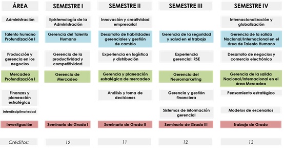 Profundización I: Gerencia del Talento humano; Desarrollo de habilidades gerenciales y gestión del cambio; Gerencia de la seguridad y salud en el trabajo.