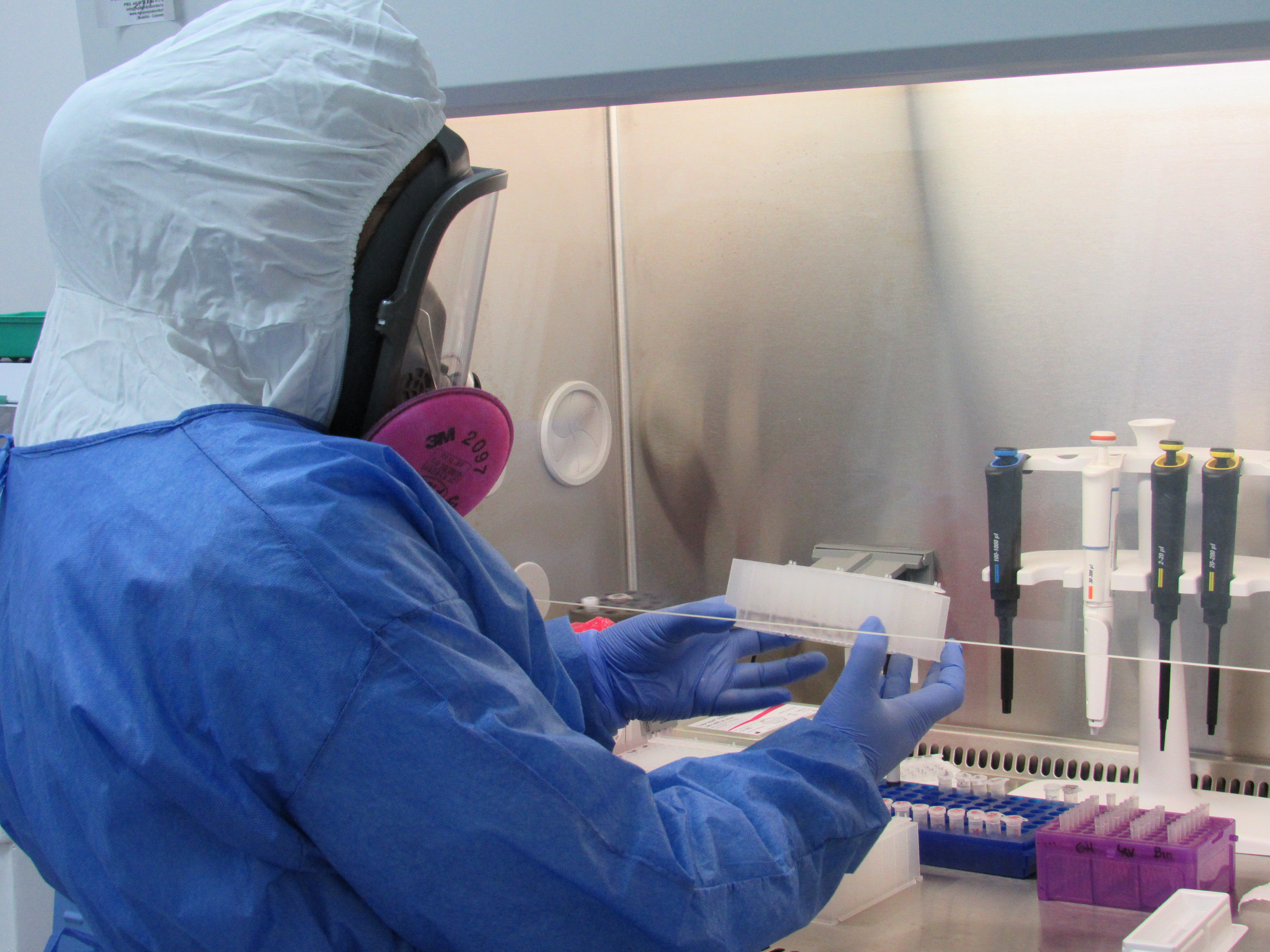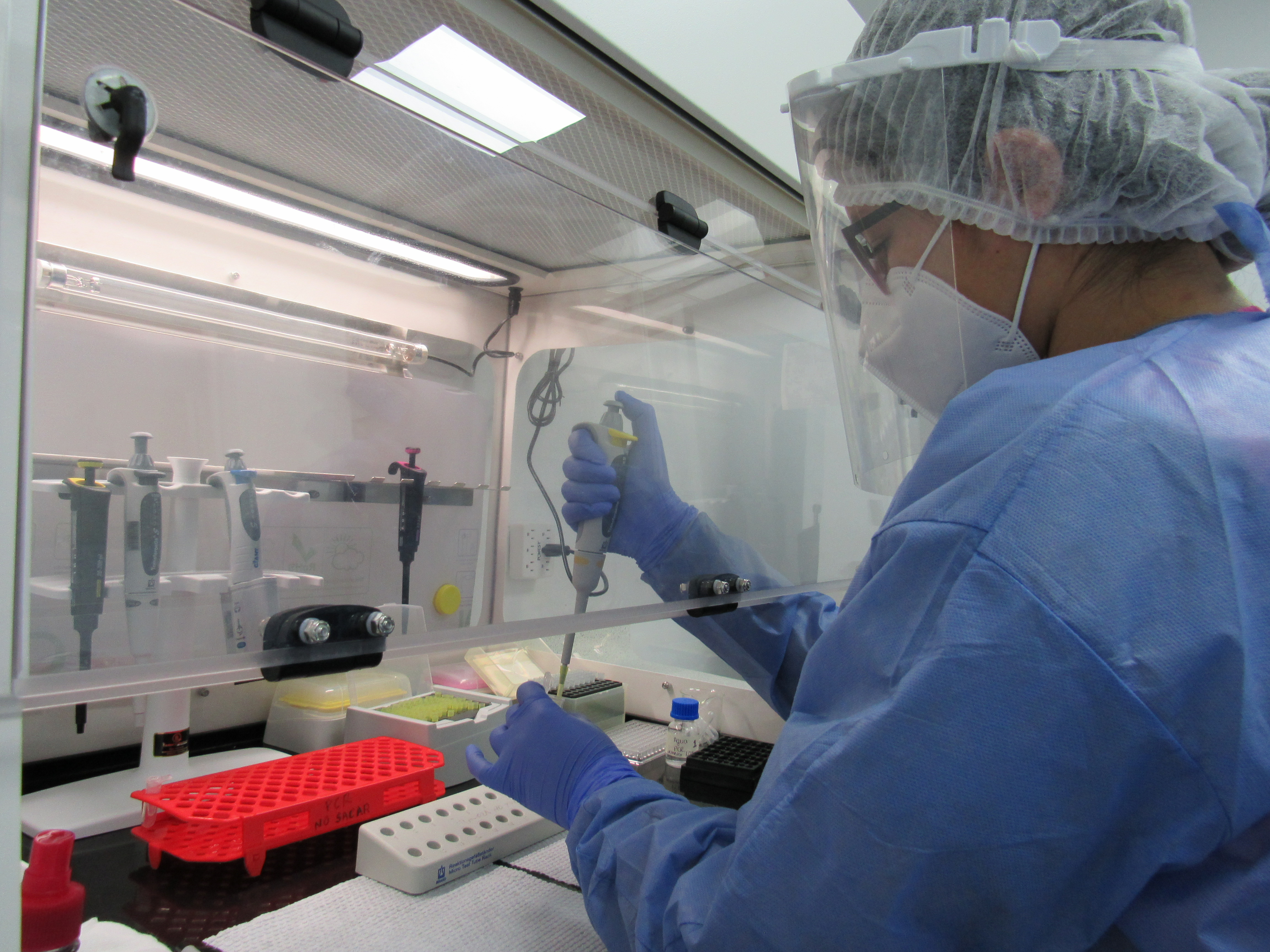 En esta área se lleva a cabo la preparación de la reacción mediante la adición del ácido nucleico previamente extraído a la solución de Master Mix, siguiendo condiciones controladas para garantizar la precisión y reproducibilidad del proceso.